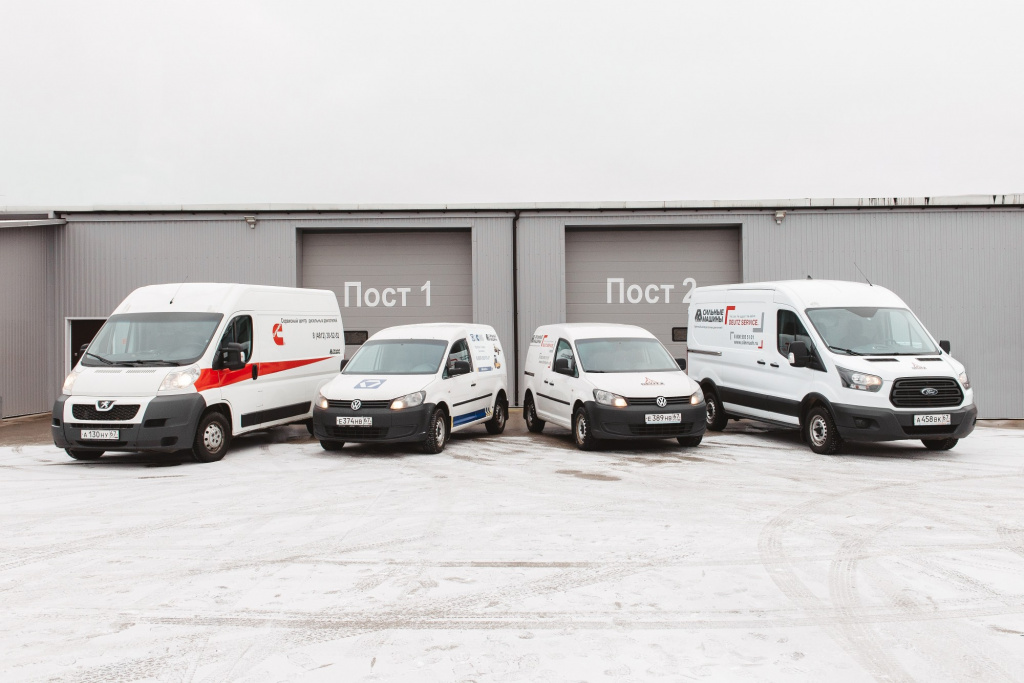 Сервисный центр «Сильных машин» представлен 20 машинами «скорой помощи» технической службы для выездов на объекты заказчика. Каждая такая машина оснащена оборудованием, позволяющим ремонтировать технику в «полевых условиях».